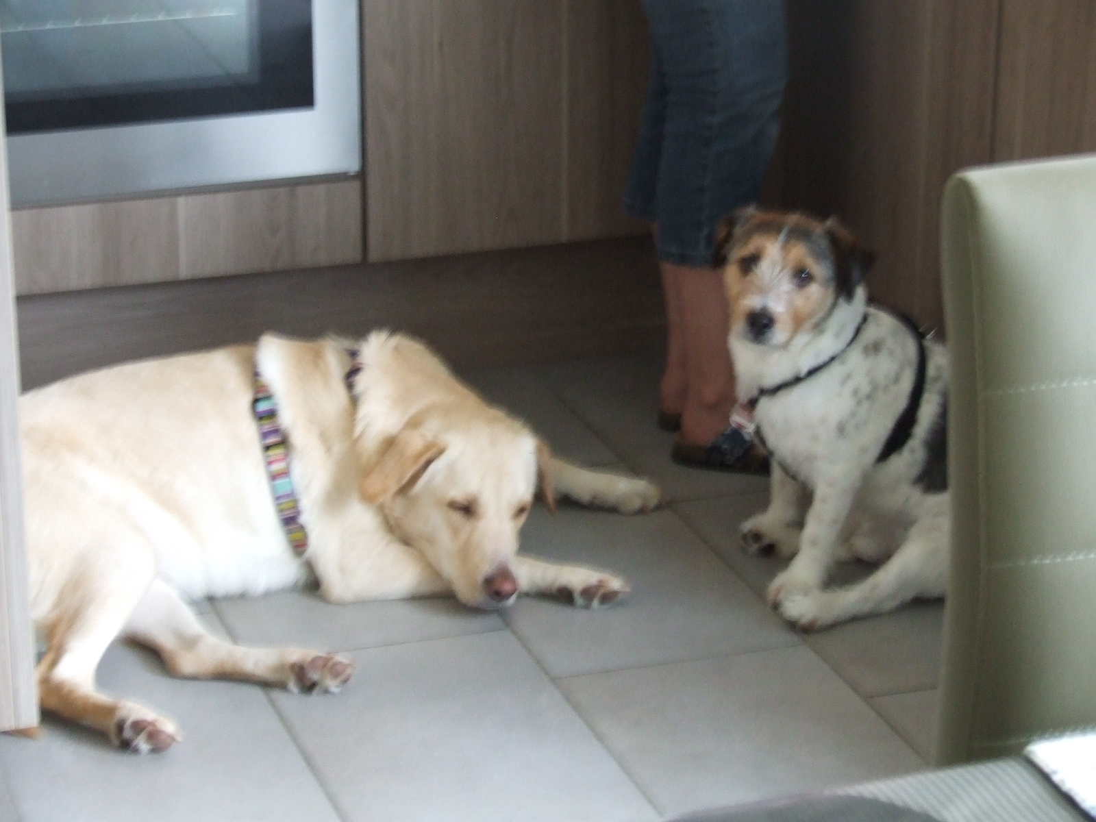 rechts sein Hundekumpel der freiwillig auf die Matte ging.