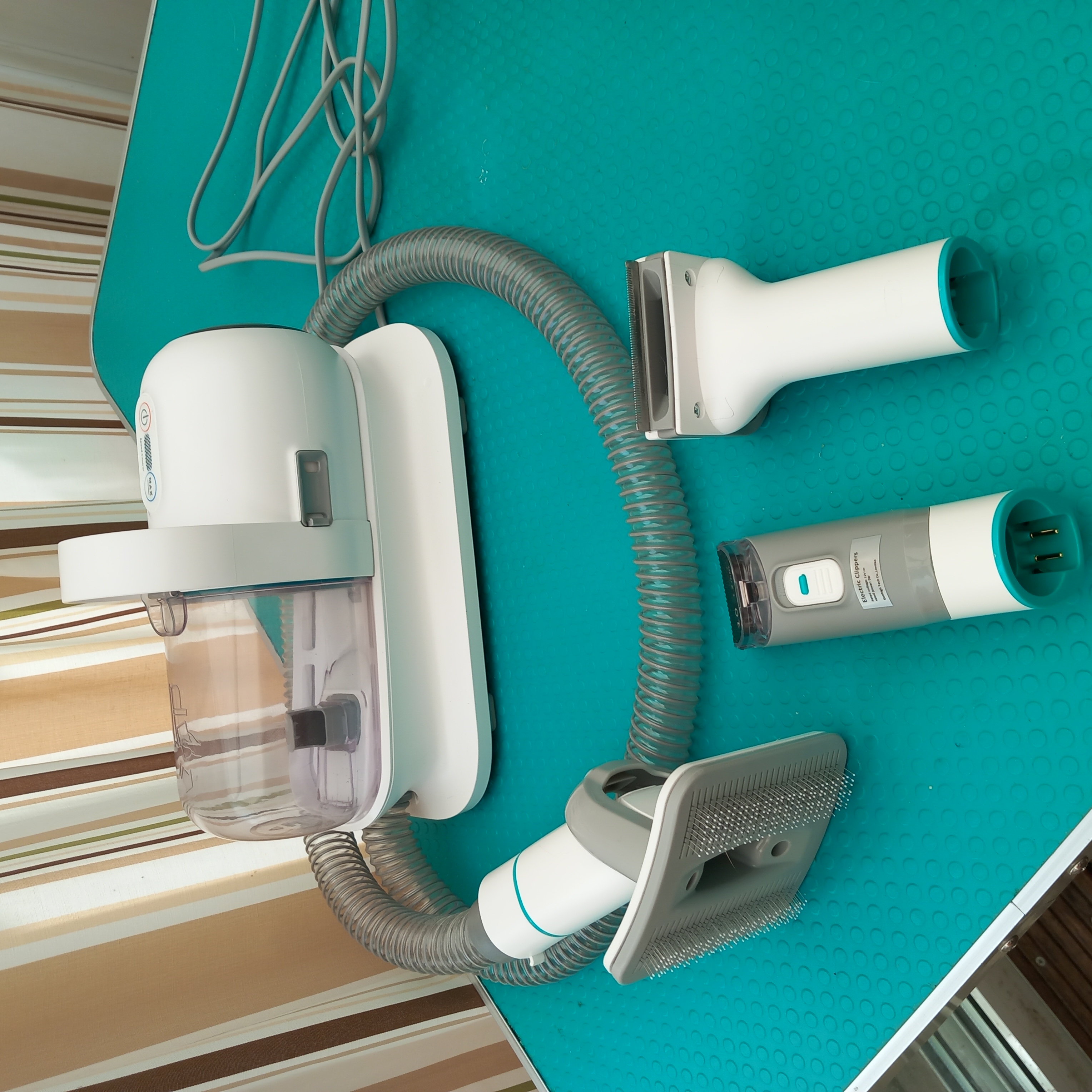 Ob scheren, trimmen oder einfach nur kämmen, mit meiner neuen Station mit angeschlossenem Sauger, werden die Hundehaare sofort aufgesaugt und die Wohnung bleibt sauber. Verschiedene Scheraufsätze gehören natürlich dazu.